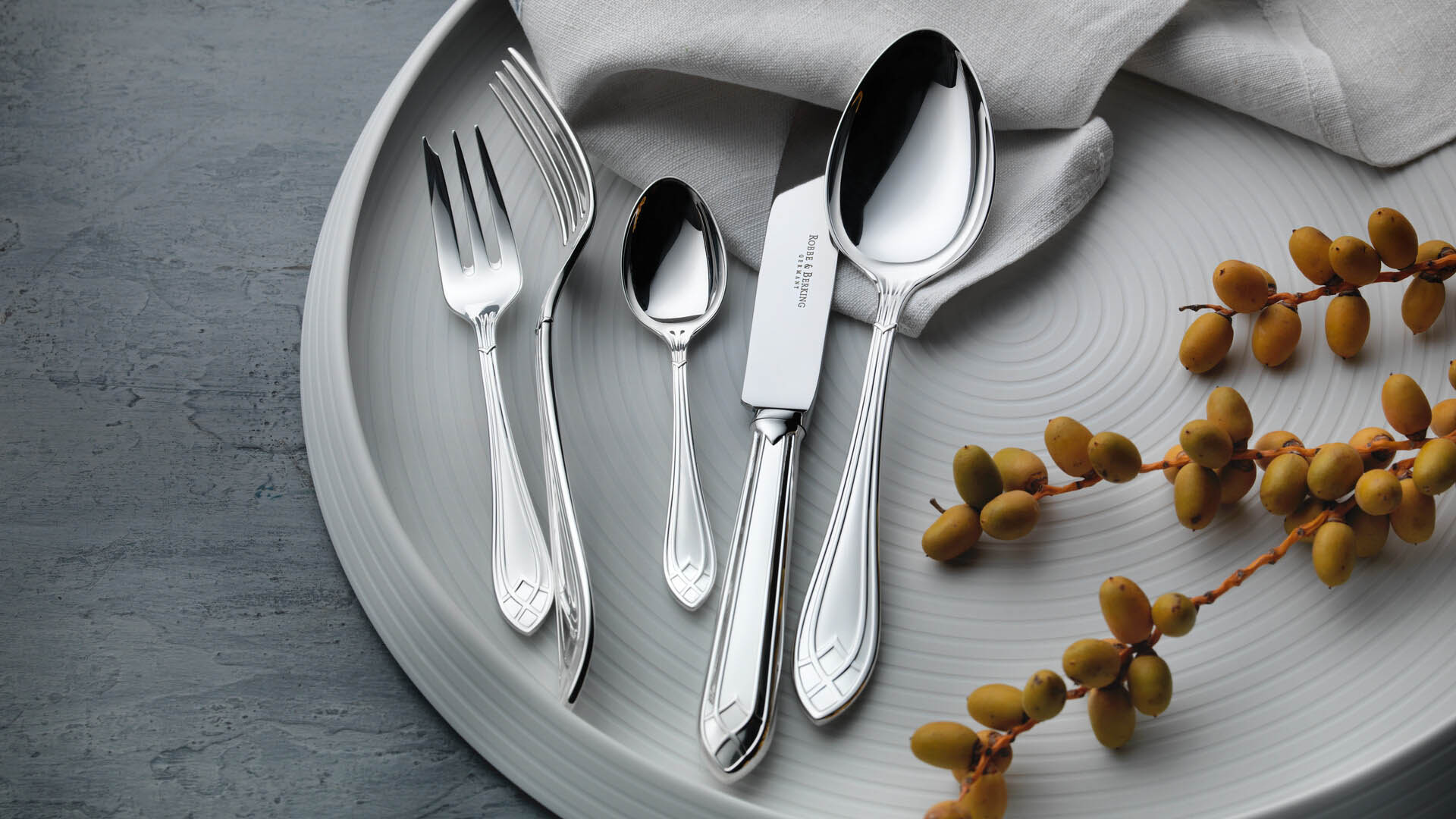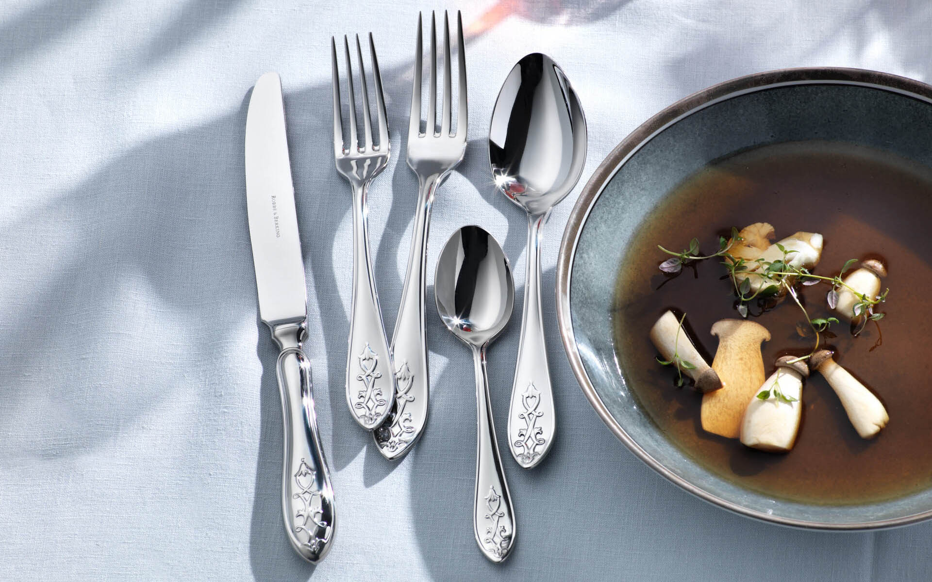 Favored by fine-dining restaurants, luxury hotels, and yachts, Robbe & Berking flatware also brings a sense of timeless elegance to sophisticated home tables.